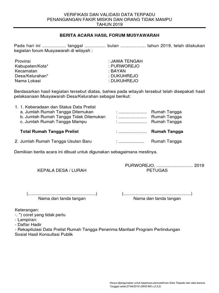 Dalam rangka pelaksanaan penyaluran Bantuan Sosial Paket Sembako Terdampak Covid-19 terkadang data penerima Bansos perlu adanya penggantian jauh hari sebelum. Lampiran berita acara musyawarah penggantian penerima bantuan paket sembako terdampak covid-19. Jangan lupa masukan sandi atau password di atas dengan benar.